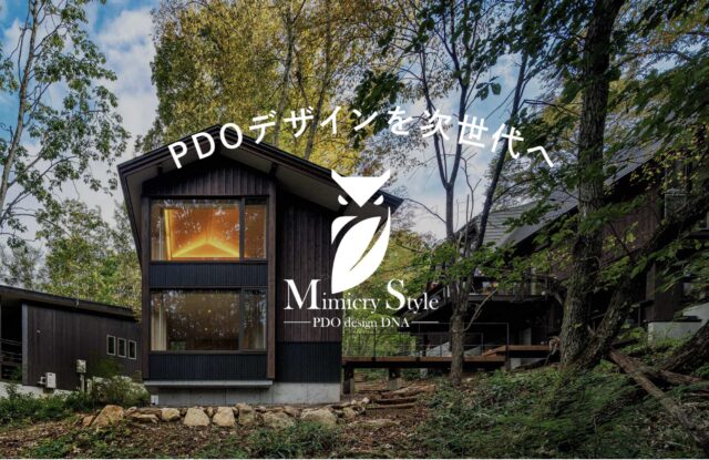 PDOデザインを次世代に繋げていくためのプロジェクト、「Mimicry Style」 「自然の流れに沿う」「暮らす人に沿う」というふたつのキーワード。 プロジェクトの土台となる敷地に目を向けること、要望が生み出される自分の源を感じること。 流れやエネルギーを感じつつ、応答する無理のないデザインを心がけています。 PDOはこれからも広義のパッシヴデザインを実践していきます。