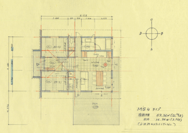 「Mimicry Style 」急傾斜地対応(2/10勾配程度)のMS-4を企画中です。 ロフトを含め26坪、2LDK+ロフトのコンパクトタイプ。 ロフトはワークスペースにしたり、大人数での滞在時にはベッドルームとして使うこともでき、コンパクトなプランながらさまざまなシチュエーションに対応できるモデルとなっています。 広めのデッキを設けて植栽を施し、外部環境とのつながりをより重視したモデルに育てていく予定です。