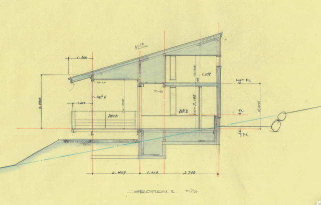 「Mimicry Style 」急傾斜地対応(2/10勾配程度)第2弾のMS-5を企画中です。 傾斜を生かしたスキップフロアのプラン。 2LDK+ロフトで28坪くらい、屋根のかかったセカンドダイニングにもなるデッキがあります。