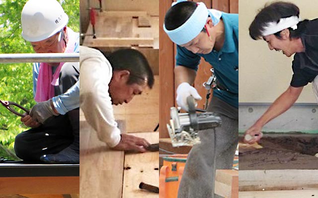 家づくりには21業種が連携 木造住宅の施工では大工がもっとも主要な役割をしますが、PDO流工法では21の業種が協働してつくられていきます。それを適材適所適時に指揮していくのがPDOの役目でもあります。