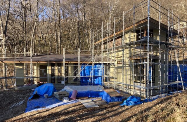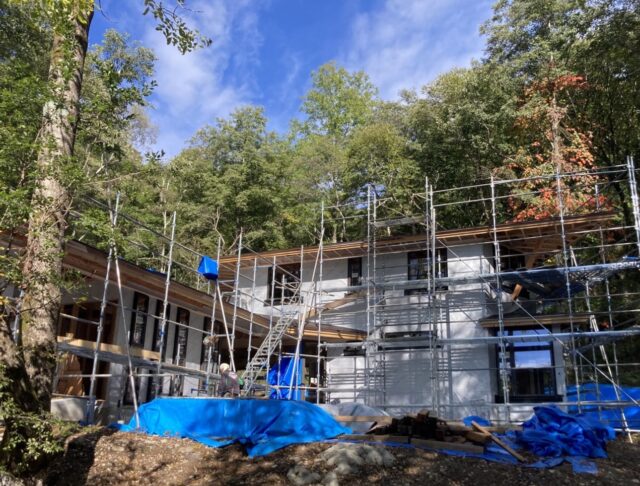 夏の工事休止期間のある別荘地ですので、今後の天候次第ではありますが、休止期間前の上棟を目指しています。