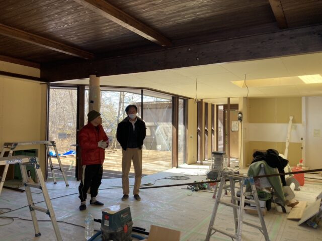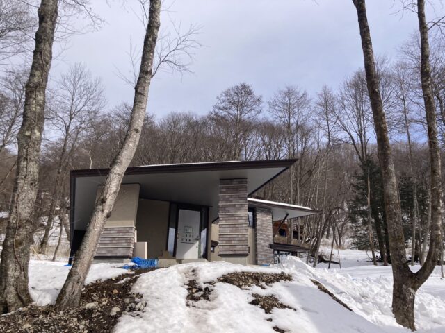 本日は三隻の船Ⅲ(レジデンス棟/中央)のリノベーション計画のために、雪の中現地調査に入りました。オーナーにとっては数十年にわたり、その変遷を見ながら大事な節目で滞在したレジデンス棟には特別な想いがあります。