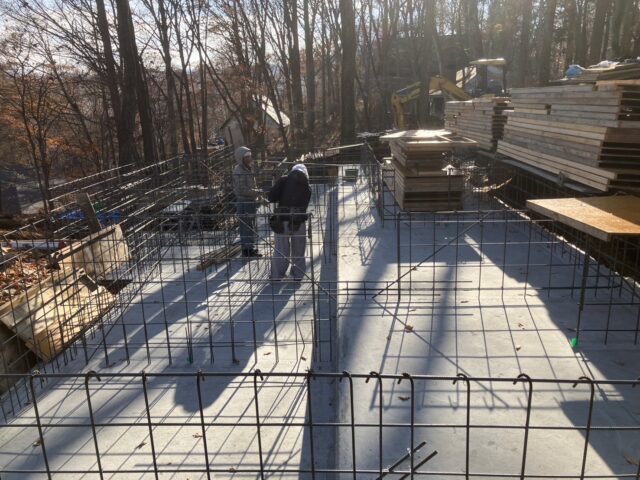 型枠が組み上がり次第に立ち上がりのコンクリート打設して、年内に基礎工事を完了する工程です。