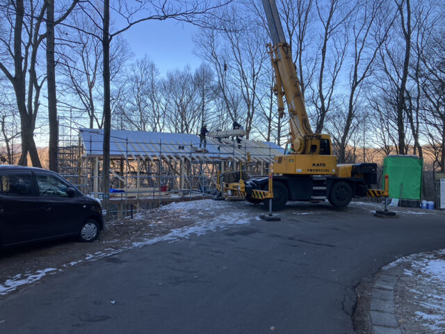年明けからクレーン車が入り建て方スタートです。