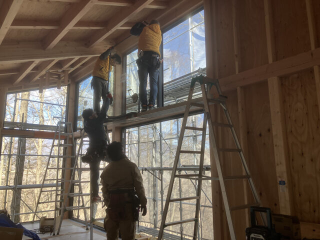 現場はサッシの取り付けが終わり、少し作業環境はよくなっています。