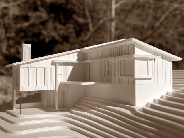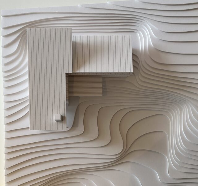 模型を見ると設計建築がいかに合理的に敷地傾斜に合致しているかが