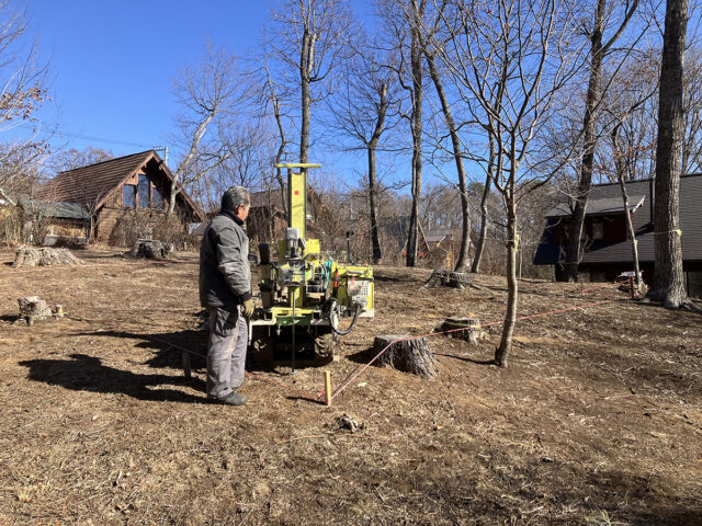 建物四隅と中心部の計5ポイントの地盤調査を行いました。