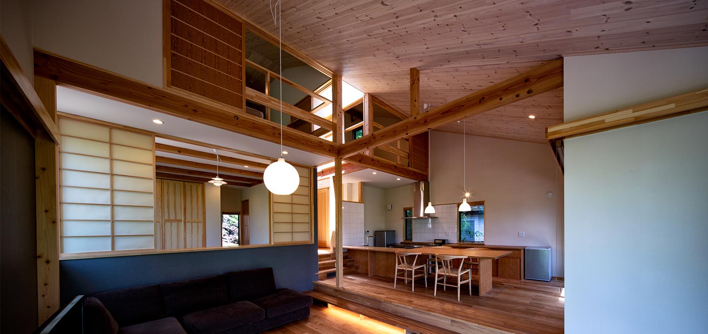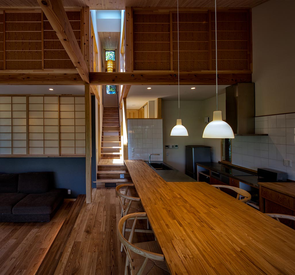 森の中に浮遊しているようなダイニングリビングができました。